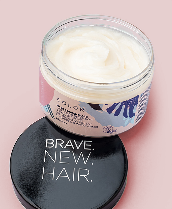 O: Appliquez le masque COLOR sur les cheveux mouillés en commençant au niveau des oreilles jusqu’aux pointes pour protéger et préserver la couleur.