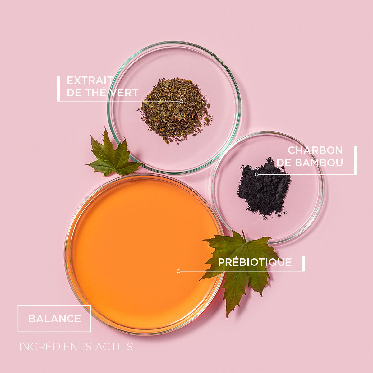 - La formule contient de l’inuline, un probiotique puissant, qui renforce les bénéfices des “bons” micro-organismes et stabilise la balance naturelle du cuir chevelu.